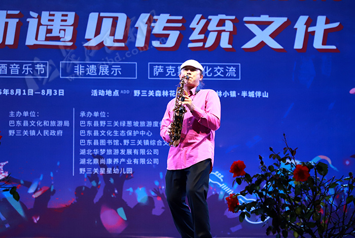 萨克斯对话土家非遗 野三关中西合璧演出燃动林海