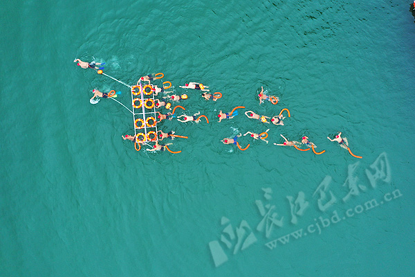 舞台上,动感十足的开场舞,引来观众阵阵喝彩,江面上,摩托艇的花式表演,博得观众声声惊叹。来自赤壁市泳协的肖学斌称,他们是第一次到巴东参加冬泳,一来就被巴东的美景深深折服。“我们昨天也试了水,感觉巴东的水温比赤壁的水温还要高,非常适合冬泳。”