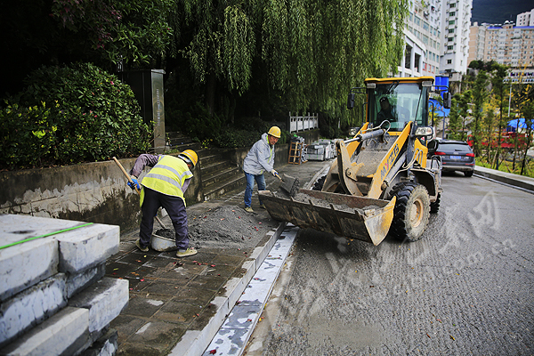 在亲水广场外围,巴东新港路黑色化施工队正在加紧铲运公路两边的杂物。据巴东冬泳赛事会场搭建负责人张文文介绍,目前,施工方正抢抓时间对新港路路面进行黑色化混凝土作业,确保冬泳赛事活动举办之前完成路面黑色化改造工程。
