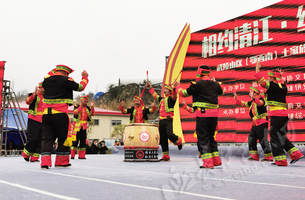 本网讯(记者 刘修爱 特约记者 谭楚星 陈美强)清江旖旎,雨雾缭绕。12月3日,“相约清江・缘起非遗”武陵山区(鄂西南)土家族撒叶儿嗬邀请赛在巴东县水布垭镇廪君文化广场举行,来自五峰、长阳、鹤峰、巴东等四县市的十支撒叶儿嗬代表队共80余名队员参加竞赛。
